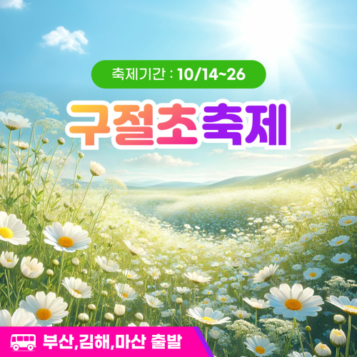 정읍 구절초 꽃축제 페이지 정보 목록 정읍 구절초 꽃축제 여행지 정읍 상품가 1인 90,000원 출발일 2025년 10월 14일 ~ 10월 26일 포함사항 전용버스, 가이드, 1일3식, 간식, 생수 등 불포함 개인 경비 ,여행자보험 특전사항 예약하기 인쇄 예약하기 예약일자 예약자 * 휴대폰 * 이메일 기타 * 예약하기 * 예약시 기입하신 번호로 직원과 상담후에 예약이 확정됩니다. 여행상품소개 본문 이전글 안동 추억의 기차여행 25.09.09 다음글 금산 세계 인삼축제 25.09.09 목록